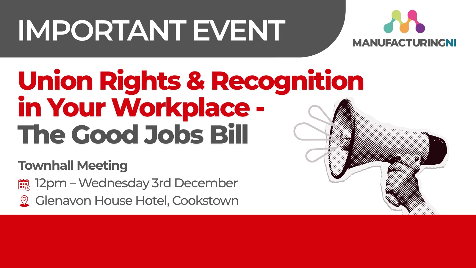 Townhall Meeting 12pm – Wednesday 3rd December Glenavon House Hotel, Cookstown Wide ranging changes which will fundamentally alter the world of work are being prepared by the Department for the Economy with new legislation planned to be presented to the Assembly by the Economy Minister in the New Year. The Good Jobs and Employment Rights […]